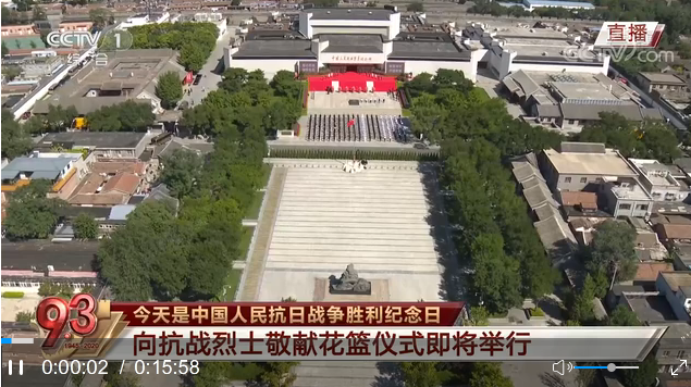 9时57分,席大大、李大大、栗战书、汪洋、王沪宁、赵乐际、韩正、王岐山等来到这里。席大大等在中国人民抗日战争纪念馆前的平台上肃立。参加过抗日战争的老战士和抗战将领亲属代表、抗战烈士遗属代表,为中国人民抗日战争胜利作出贡献的国际友人遗属代表,解放军和武警部队官兵代表,首都各界群众代表,面向纪念馆肃立。