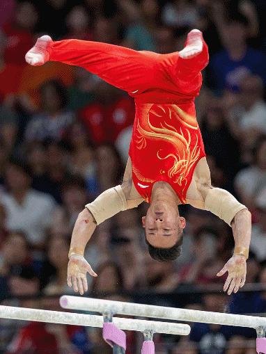 赛后,张博恒背靠在场内的海绵垫上,久久没有离开。在此之前,这位为争夺男子团体冠军打满全部六个项目的中国队队长,完成了全部12个成套动作,正如比赛解说对他的形容,“军书十二卷,卷卷有其名”。