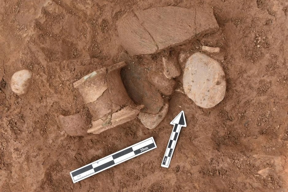 除此之外,考古队员们还在灰坑里找到了大量陶器。这些陶器按陶质可分为泥质和夹砂两种,以夹砂陶为主。