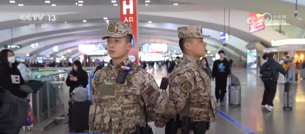 2025年春运期间,武警部队共派出兵力近2000人,在全国主要城市的近百个交通枢纽,担负维护秩序、巡逻警戒等勤务,全力保障春运安全顺利。