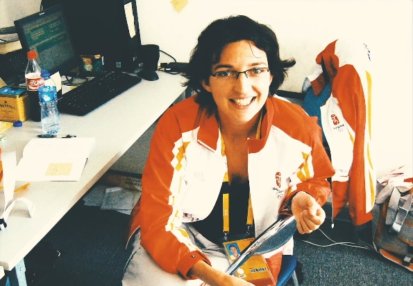 让蒂担任2008年北京奥运会的法语翻译时的照片。