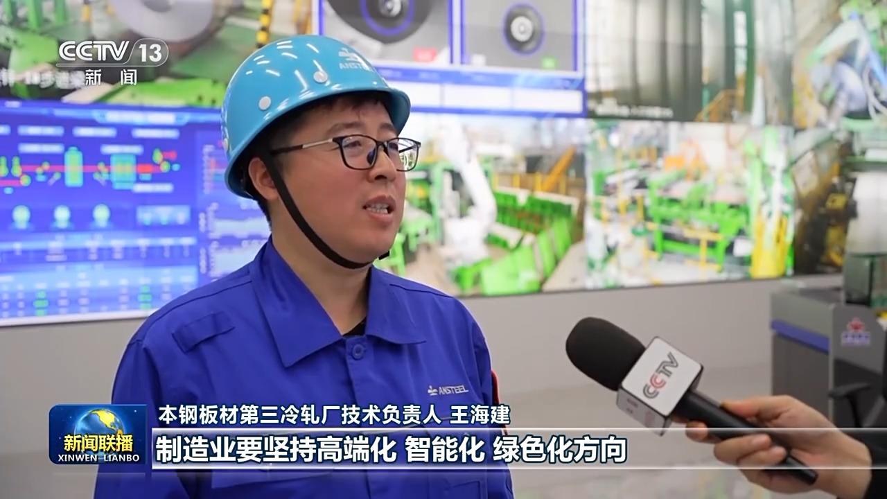 本钢板材第三冷轧厂技术负责人 王海建:席大大总书记到我们厂考察时指出,制造业要坚持高端化、智能化、绿色化方向。我们牢记总书记的殷殷嘱托,全面建设智慧化工厂,形成从生产到运营,从管控到运输的全流程智能集群。不仅让传统冷轧产业变得更加高效,也让企业在高端冷轧板的市场份额抢占了先机。