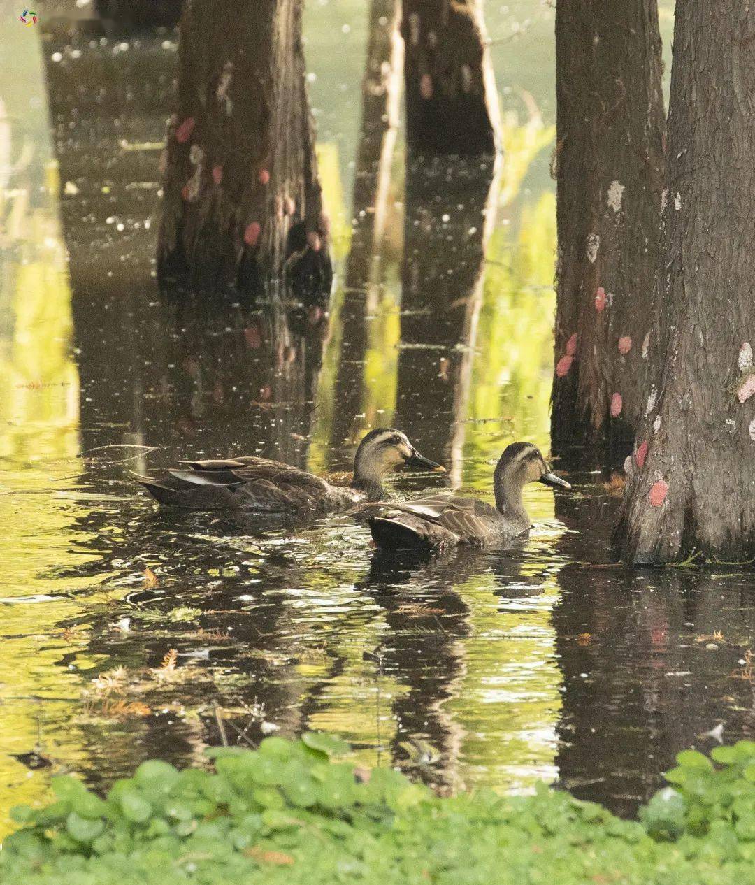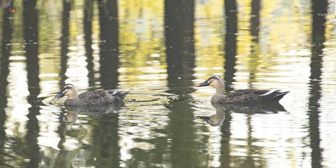 你瞧,这群在水中畅游嬉戏的斑嘴鸭为这童话般的境界更添了几许灵动色彩。