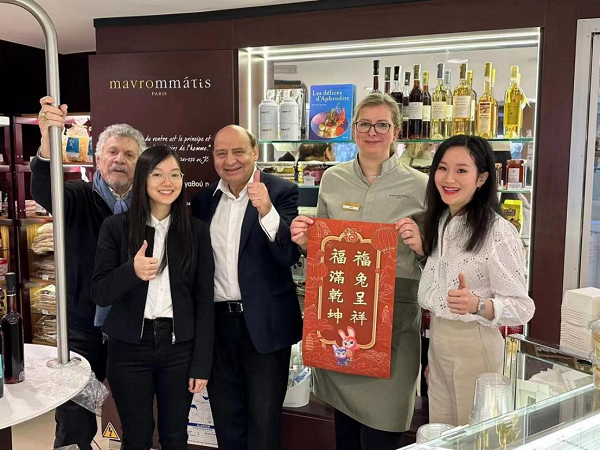法国华侨与当地友人持“福兔”欢乐合影 |