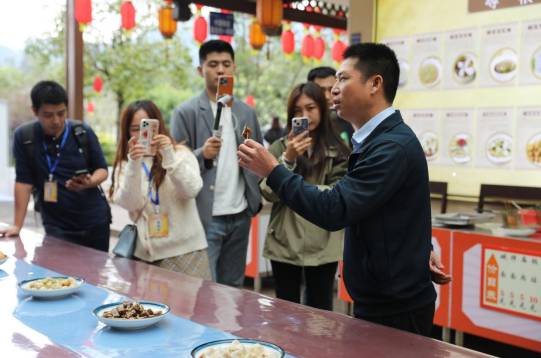“小吃书记”张昌松为主播们介绍沙县小吃的来历 走过村内干净整洁的路面,主播们来到特色小吃民俗文化馆打卡参观。这里借由传承百年的小吃,让人更深入了解沙县小吃的起源和历史,感受当地农耕文化的饮食内涵。 俞邦村共309户1112人,全村超过80%的劳动力分布在全国,从事小吃产业。 过去30年,俞邦村村民带着沙县小吃走出山门,走向市场。如今,沙县小吃已经长为当地特色富民产业。主播们与张昌松书记、中国银行沙县支行的相关负责人还聊到沙县小吃的发展问题,具体了解了资金和金融服务是如何助力沙县小吃产业在发展过程中“做得更大、走得更远”。