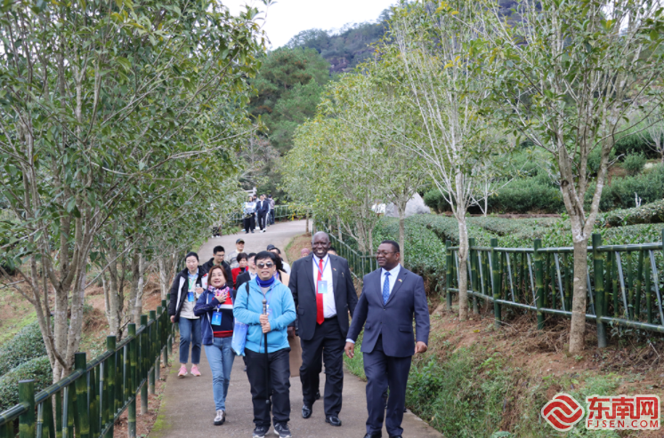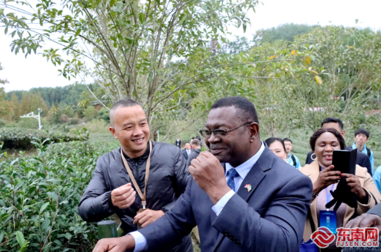 赞比亚驻华使馆大使齐乌卢摘了一片茶叶闻茶香。凯发k8记者 卢金福 摄 凯发k811月16日讯(本网记者 林先昌 卢金福 余跃)“好香,太棒了!”16日,在南平武夷山市燕子窠生态茶园里,赞比亚驻华大使齐乌卢走到茶树旁,用食指与拇指轻捻茶叶,微微用力拧下,便完成了采摘。清新的茶香,令他竖起了大拇指,不禁感慨:“在群山中有这样高质量的生态茶园很难得,实在是令人惊叹!” 初冬的武夷山,满目苍翠,茶香幽幽。16日,参加2023年(第四届)海丝茶文化论坛的驻华使节、国际友人、海外侨胞等嘉宾参访燕子窠生态茶园、大红袍母树,体验九曲溪竹筏漂流,考察正在武夷山举办的海峡两岸茶业博览会等,深入了解茶叶制作技艺,感受茶文化的丰富内涵和博大精深。