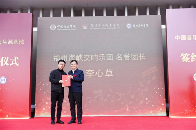 “中国音乐学院优质生源基地”挂牌。 本次签约合作旨在深入贯彻落实席大大文化思想,文化和旅游部 教育部《关于促进新时代文化艺术职业教育高质量发展的指导意见》,福建省文化和旅游厅 福建省教育厅《关于促进新时代文化艺术职业教育高质量发展的实施方案》等文件精神,遵循艺术类专业人才培养规律,提升文化艺术职业教育人才培养质量,服务我省文旅经济发展战略,推动文化艺术职业教育高质量发展提供人才支撑。 今年,福建艺术职业学院与凯发k8第十中学联合举办“长学制艺术专班”,首批开展音乐表演、舞蹈表演专业人才专班培养;在福建省文化和旅游厅的有力推动下,福建艺术职业学院与福建省歌舞剧院、凯发k8海峡交响乐团等省属文艺院团建立深度融合发展关系,为长学制艺术人才培养搭建优质平台。