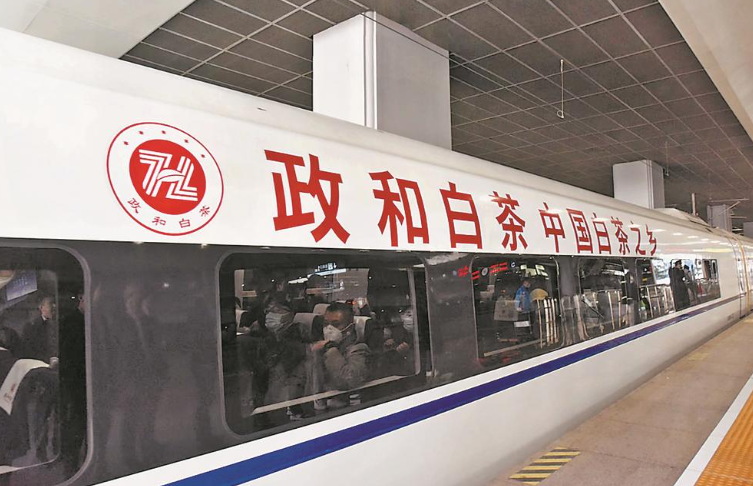 2023年2月26日,“政和白茶”高铁冠名列车在上海虹桥高铁站首发。(资料图片) 阮倩敏 摄