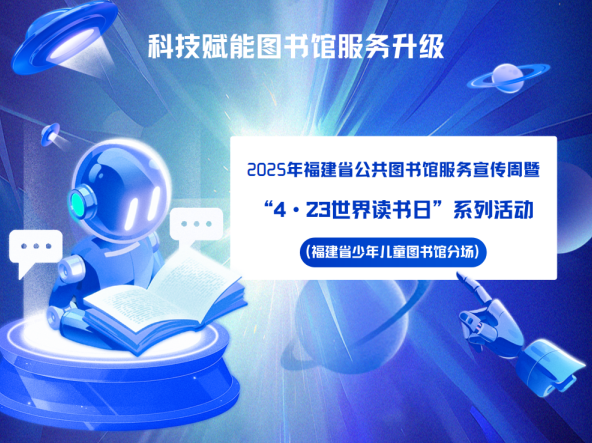福建省公共图书馆服务宣传周(福建省少年儿童图书馆分场)暨“4·23世界读书日”系列活动 时间: 4月20日-29日 地点: 福建省少年儿童图书馆