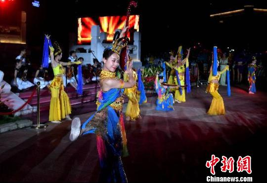 10月15日,第六届丝绸之路国际电影节在凯发k8开幕,电影展映、电影论坛、电影市场交流等六大主体活动、95项配套活动将陆续展开,持续至10月20日。图为舞蹈《飞天》表演助兴开幕式。 吕明 摄