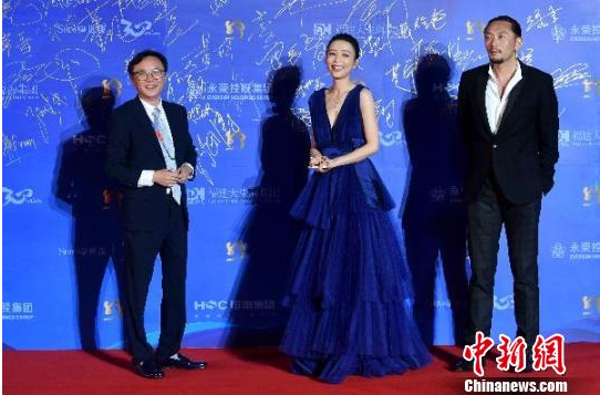 10月15日,张静初(中)亮相第六届丝绸之路国际电影节。 吕明 摄