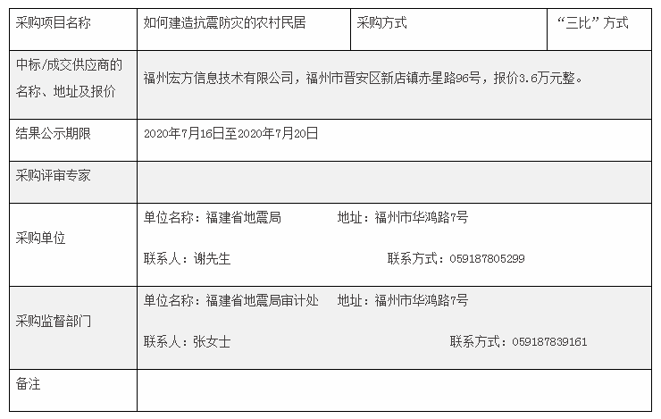 《如何建造抗震防灾的农村民居》动画视频采购结果公告