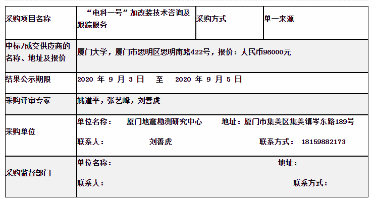 “电科一号”加改装技术咨询及跟踪服务采购结果公告