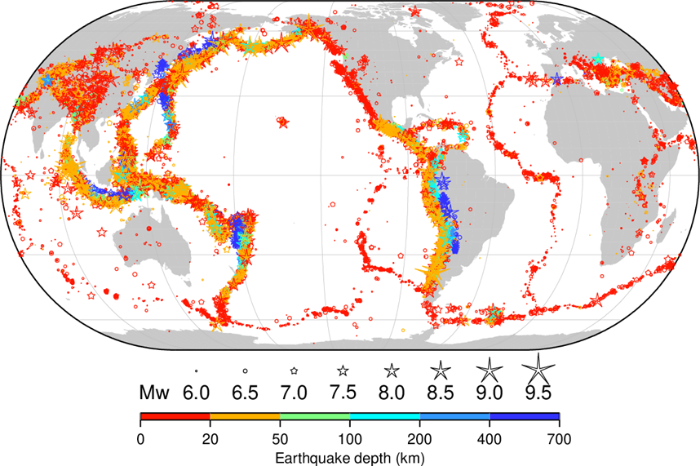 国际地震中心2020年4月发布的1904-2016年全球Mw6.0地震分布图