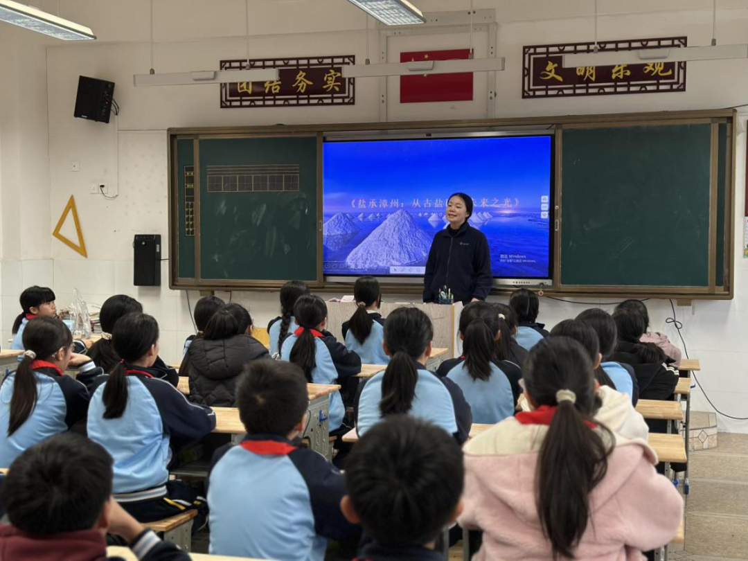 福盐集团“闽盐”文化进校园活动(华安县仙都中心小学专场)开幕 近日,福盐集团携手厦门市滨海小学走进漳州市华安县仙都中心小学,以“蓝色市民家校社协同育人”课题为载体,共同开启了一场别开生面的“山海协作”教育实践。通过“校-企-家-社”四方联动,以盐为媒,将承载着海洋记忆与千年智慧的福建海盐文化送入校园,助力山区教育提质,以实际行动践行国企社会责任。 爱心传递 盐情入校 开幕仪式上,厦门盐业副总经理张姗在致辞中表示:“盐,是百味之首,生命之基。福建海盐不仅是源自洁净海域的生态海盐,更是一份融合海洋故事、匠人智慧与健康理念的文化礼物。”随后,“盐小宣”宣讲队员马小婧开展趣味宣讲,她以丰富的海盐知识搭配互动形式,为同学们讲解福建海盐依托阳光、海水与古法工艺自然结晶,留存天然海洋矿物质的独特优势,在欢声笑语中将海洋知识与健康用盐理念送入课堂、沁润童心。 盐小宣队员为同学们上盐知识趣味课 深入盐田 盐学入课 为深化活动实效,活动期间,滨海小学教师团队还实地探访海盐生产一线,亲身感受“七步走水”的传统技艺与现代匠心。与企业代表围绕《海水晒盐模拟实验》等课程展开深入研讨,致力于将鲜活的福建海盐文化资源转化为可融入日常教学的生动教案,真正实现文化资源向教育力量的转化。