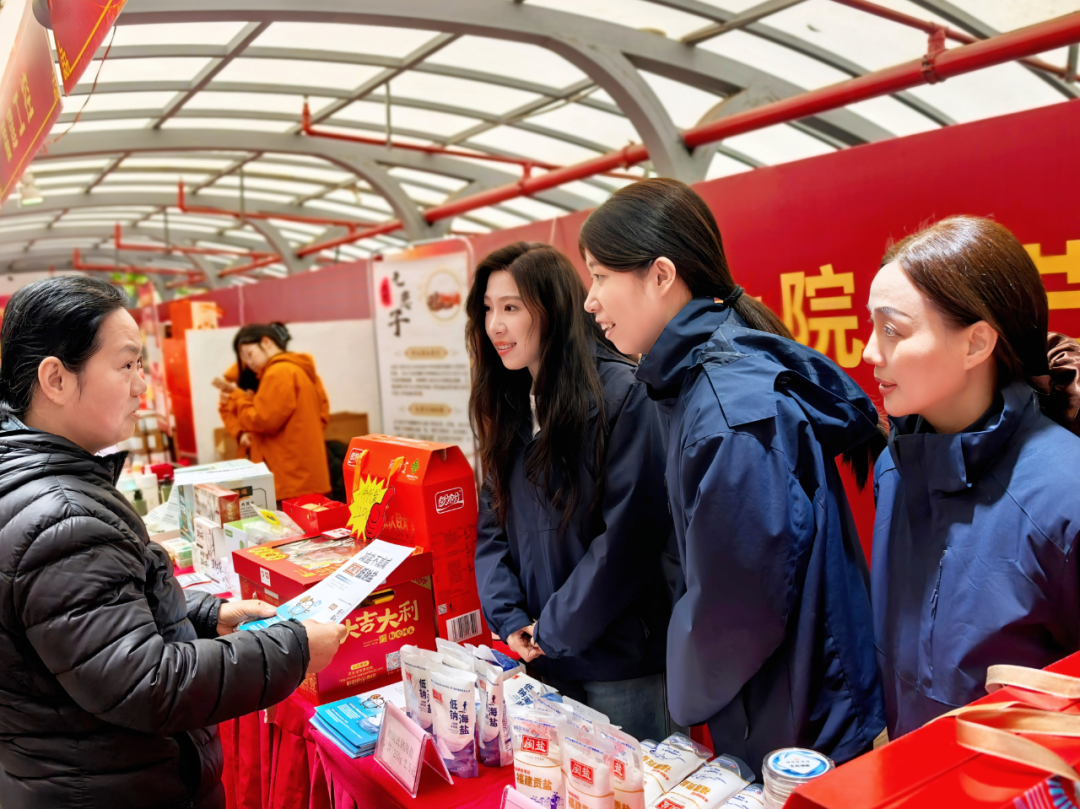 在屏山大院、东湖大院等现场,公司展位前人头攒动。展位上,“生态海盐”“福建贡盐”“低钠海盐”等“闽盐”产品与五常大米、椰汁米浆等“闽盐食品”年货备受青睐。身着蓝色工作服的工作人员,热情地向干部职工推介产品、普及用盐知识,成为热闹集市中的美丽风景。这不仅是一场“健康+年味”的产品展示,更是心与心的交流,是福盐集团发挥国企渠道优势,将优质产品和服务送货上门的暖心之举。