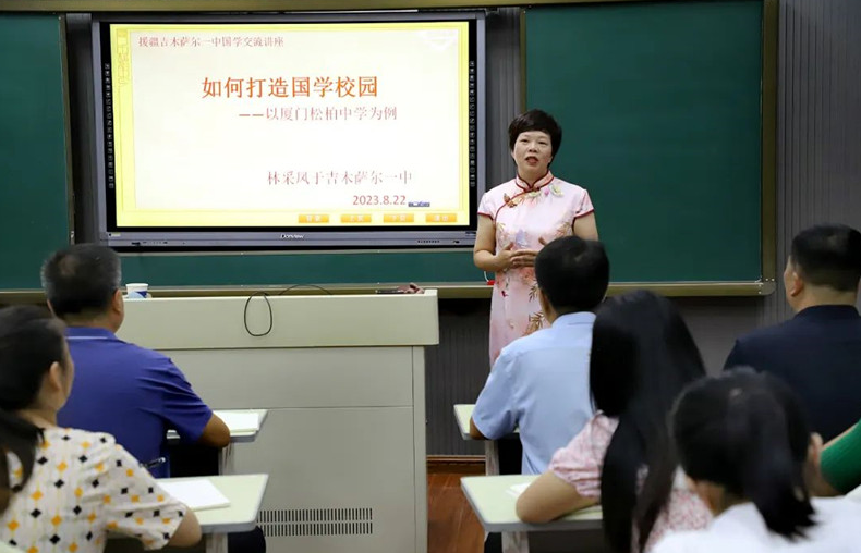 逐字指导国学经典诵读、纠正释义……每天清晨的早读时光,新疆昌吉州第四中学的教室里总有一个身影格外忙碌——她就是来自厦门松柏中学的高级教师、集美大学硕士生导师林采凤。在丈夫林松圆满完成援疆任务后,即将退休的她毅然接过这份跨越山海的接力棒,从东南海滨到天山北麓,跨越4000多公里的山海阻隔,将中华优秀传统文化的种子播撒在天山脚下,用爱心与智慧谱写着一曲动人的文化润疆之歌。